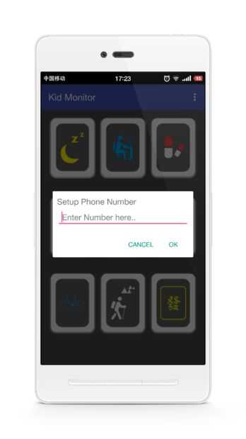 Y sus padres pueden hacerle una llamada, simplemente haga clic en el botón del medio, haga clic otra vez para colgar.