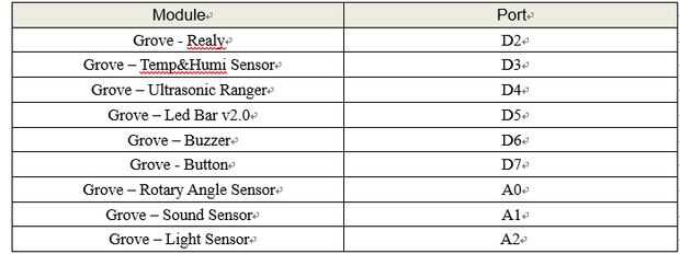 Ahora, debemos conectar módulos de Grove a Grove Pi como el cuadro siguiente muestra