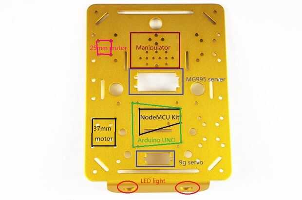 Sobre el chasis del coche, sin duda, tiene muchas opciones. En el SmartArduino, se puede elegir una serie de chasis de tanque nuevo, como T100, T200, T300 y C300. Interesante, cuando usted consigue un chasis de coche del tanque, puede pertenecer muchos tipos de chasis de tanque/coche cambiando los marcos de 25mm / 35mm motor. Luego, se pasará un coche de 4WD. Por otra parte, el panel principal se diseña ya para Arduino UNO R3 y kit de Junta de desarrollo de ESP8266 (NodeMCU).
