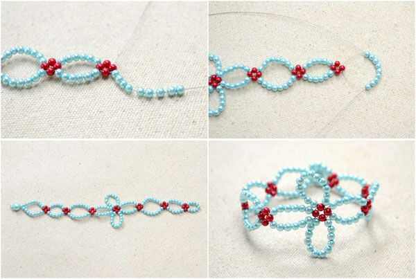 Cruzar dos alambres a través de 8 ~ 9 perlas para crear un bucle permiten el paso de 8mm partida por.