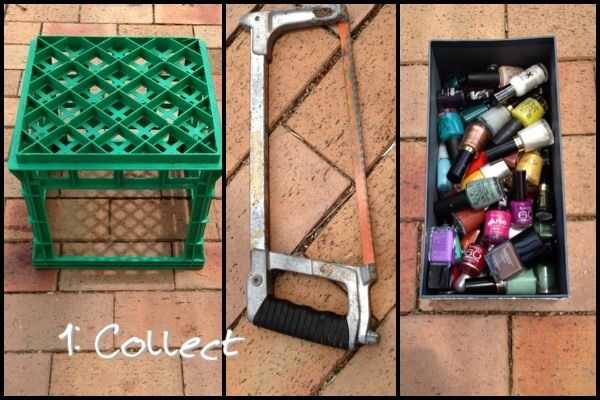 Este es un Hack Re-Purposed DIY que surgió el año pasado para hacer un estante de esmalte de uñas de una bandeja de gran tamaño cubiertos. La rejilla es super robusta y puede montarse fácilmente en una pared a través del alambre de malla de forro o i