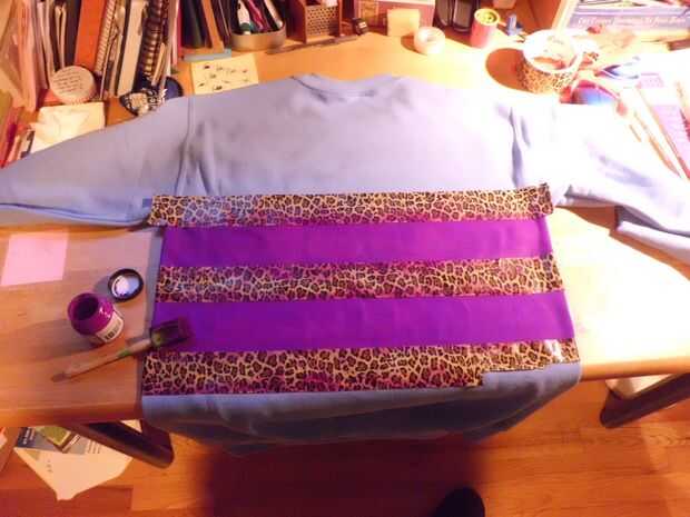 En la parte posterior esta vez, repita los pasos 2 y 3. Asegúrese de alinear las tres tiras de cinta adhesiva con las franjas frontales de rayas rectas y consistentes. Deje que la pintura seca.