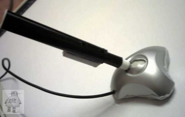 La base original del ratón fue cortada cerca para que coincida con la forma de la base, utilizando la plantilla de arriba.