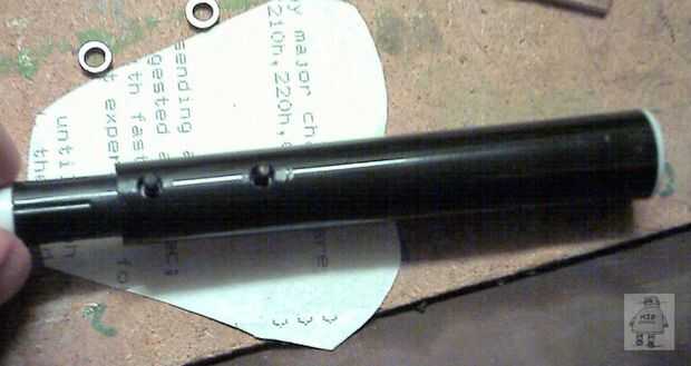 Los botones están montados en el cuerpo de la pluma: pequeños agujeros permiten los actuadores a través de agujeros más grandes, que son un ajuste apretado en el cuerpo, les permiten empujar desde la parte posterior.