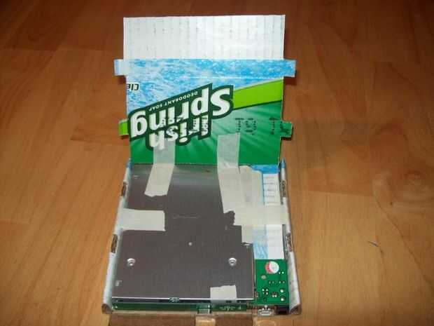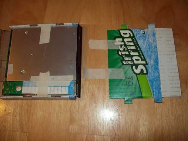 Había pegado a la bandeja de la unidad y había doblado hacia abajo, luego asegura los lados de la cáscara a la bandeja.