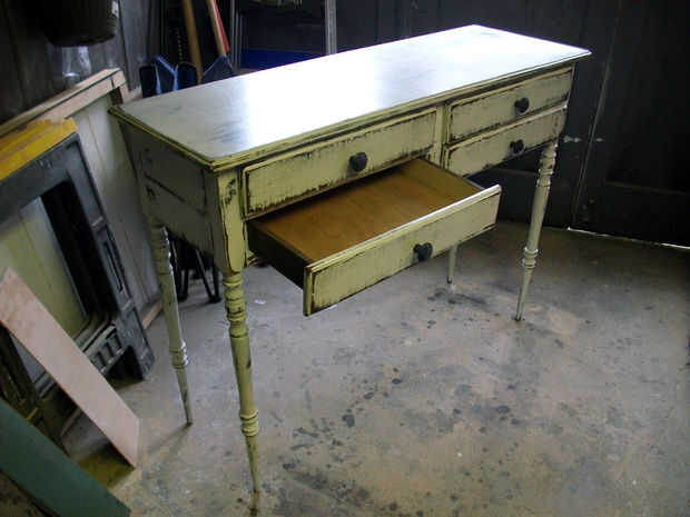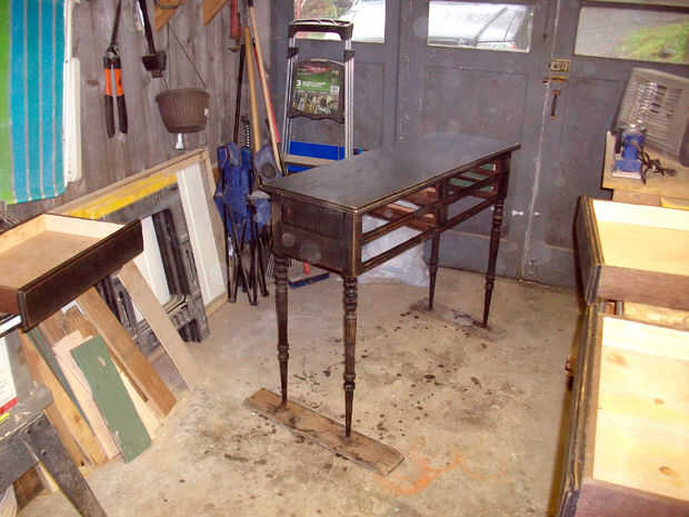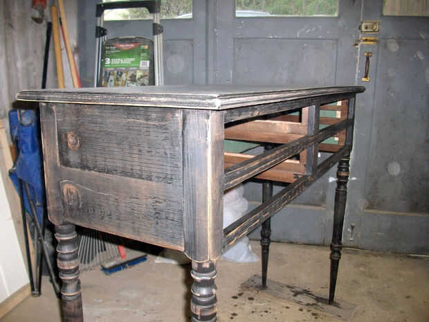 Cuando el negro se seca, lijar ligeramente toda la pieza para permitir que la mancha a traslucir en algunos lugares.