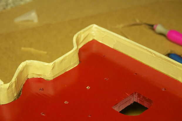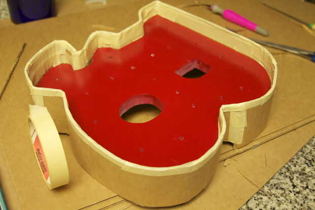 Con cinta de enmascarar, cubrir el cartón. Originalmente había utilizado cinta adhesiva delgada y encontró la cinta de enmascarar gruesa de 3" para la mirada más limpia. Que desea rociar pintura sobre esto, así un montón de pequeños será muy notable en el producto final.