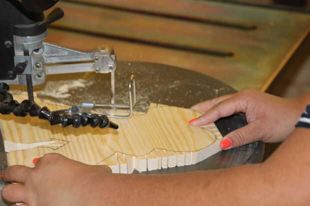 Había utilizado en bordes curvados, pero encontró que la mesa y la base de la sierra sacudió/vibraron demasiado. Fue algo difícil trabajar, por lo que opté a pegarse con la banda y Sierra de calar.