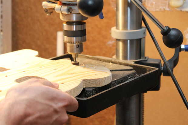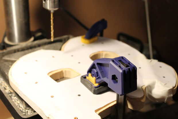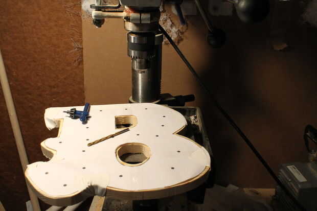 Perforé el conjunto más pequeño a través de la carta. Una vez que fue hecho, volcó la letra y perforado en ese mismo agujero, pero sólo 2/3rds de la manera a través y de un diámetro más amplio. Ver fotos a continuación con notas en caso de lo que acabo de decir arriba cero sentido. Y teniendo en cuenta mis antecedentes en la carpintería, estoy seguro de que nada de eso estaba claro.