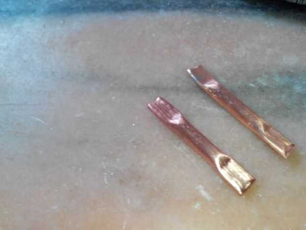 preparar dos soportes de la tubería de cobre por aplanar el extremo y dar una curva en la parte media