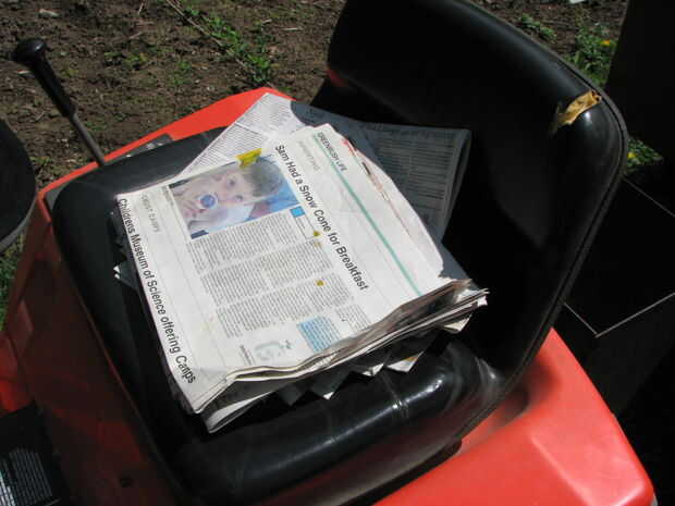 Salvar el periódico. Agarrarlos de trabajo. Solicitar ellos de tú familia, amigos un vecinos. El más grande el jardín, más se necesita.