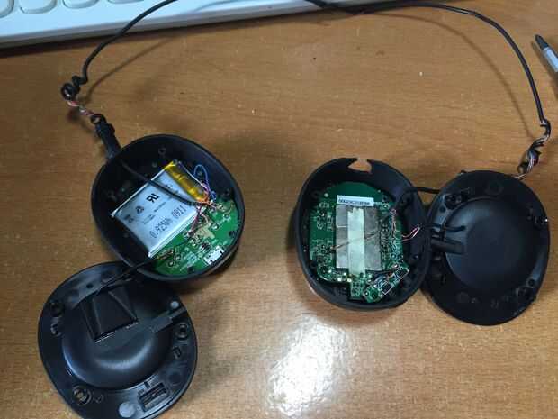 Después de una inspección, uno de los altavoces que es conectado por dos cables es más fácil de quitar y se extienden a otro orejeras en comparación con el uso de conexión por cable entre ambas piezas del oído de los auriculares inalámbricos.
