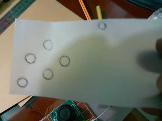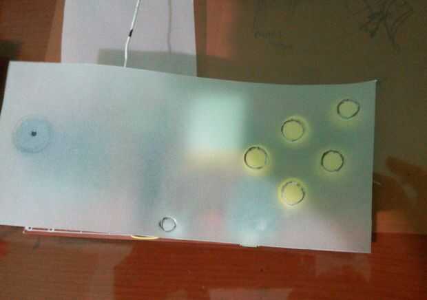 He hecho un cuadro con lámina de PVC. Cortar trozos de hoja de PVC según su PCB. Coloque una pieza del tablero a la parte inferior del PCB. Tienes que realizar un agujero en la pieza superior para los botones, LED de potencia y palanca de mando. Utilicé papel de calco para rastrear la posición de los botones. Se adjuntan imágenes. Luego usé un cuchillo para hacer el agujero a la hoja superior. Entonces fijo que a PCB por el pegamento caliente.