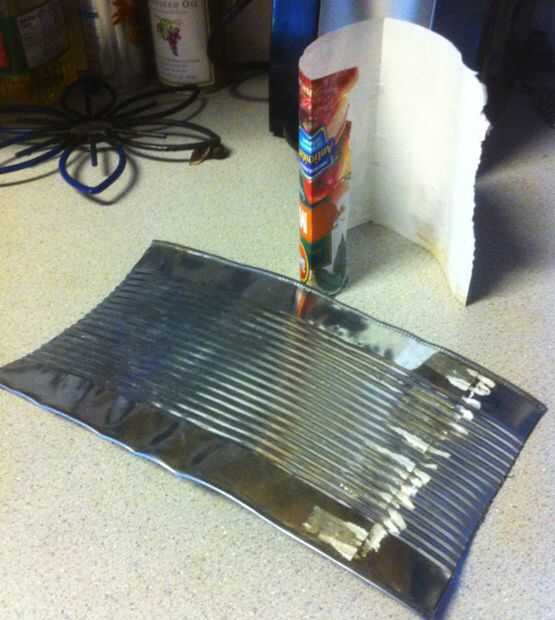 Tomar la lata de espagueti y retire con cuidado la etiqueta como se usas como plantilla.  Lavar bien la lata y corte a lo largo de la costura (cuidadosa con los bordes agudos) aplane la puede doblar con las manos o pisar ligeramente.