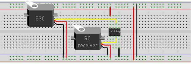 en primer lugar, esto no es un ESC. Su un adaptador que permite el uso irreversible CES como los utilizados en aviones de modelo con una superficie radio o radios de empuñadura de pistola. Va entre la Rx y la ESC. Este DIY es basado en Arduino. Aunqu
