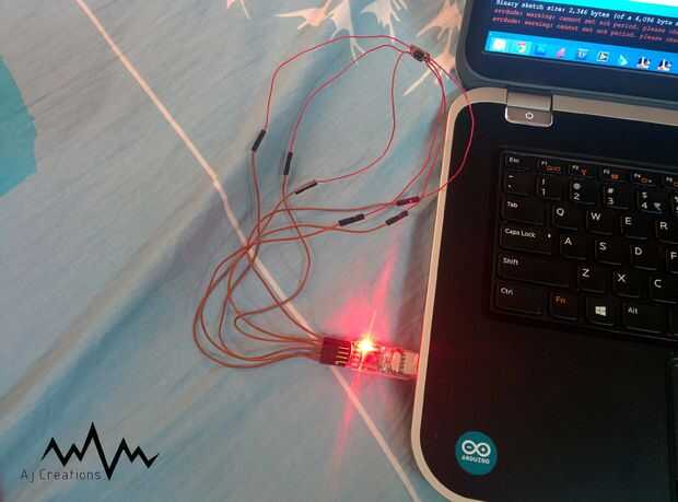 Usé un programador USBasp para cargar el código en el Tiny45. También puede utilizar un Uno o un Mega para programarlo, aquí es cómo.