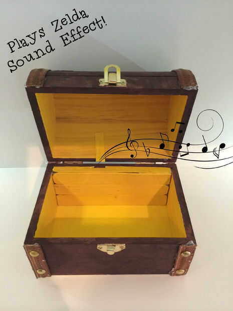 esto es una excelente réplica de un pecho de los juegos de Zelda. No sólo parece increíble, pero también juega el mismo efecto de sonido exacto el juego juega cada vez que lo abra! Este cofre es claramente un deber-tener para cualquier fan de Zelda o juego de video!