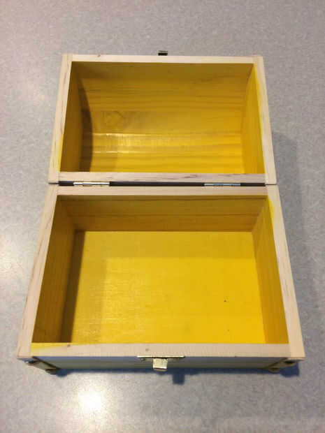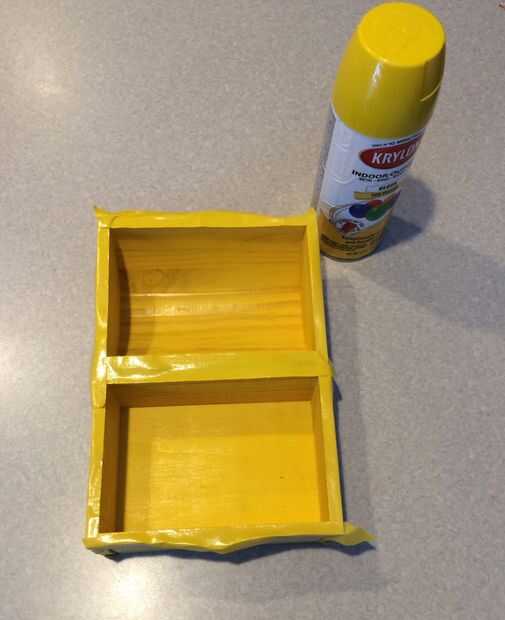 Una vez que ha secado la pintura necesita pintar el exterior de la caja marrón. Esto incluye la parte que cubre con cinta de pintor.