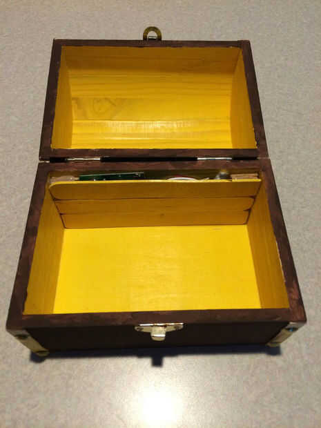 Este instructable le mostrará cómo construir un cofre de tesoro de leyenda de Zelda que hace el tesoro icónico sonido cuando se abre.Paso 1: materiales 1/4" Pine plywood. Se puede utilizar cualquier tipo de madera que quiera, pero de pino se ve bien