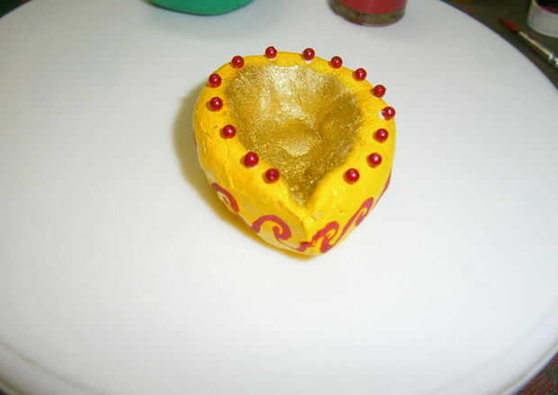 La base interna de la lámpara amarilla he utilizado polvo de oro.