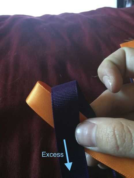 - Una vez haya realizado su lei cinta la longitud deseada, medirle a una cola para dos cintas para que coincida con la misma longitud de la cola izquierda al principio. Cortar a la longitud deseada como se ve en la imagen #15