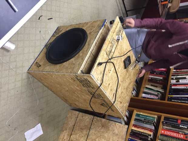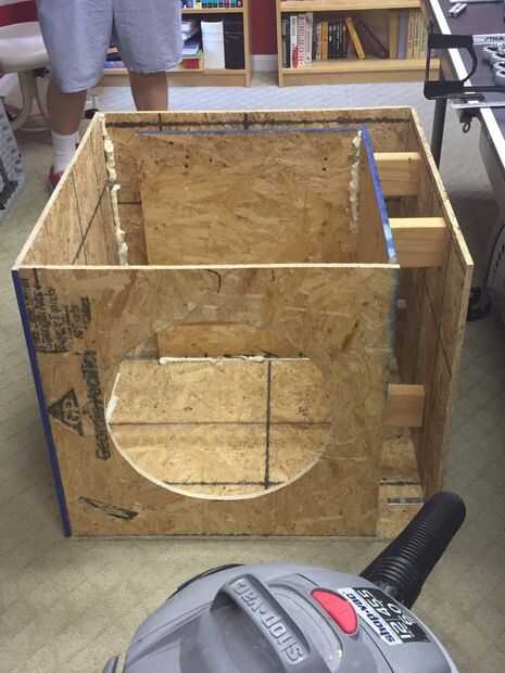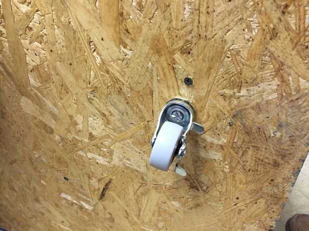 Para las ruedas, cortamos una capa extra de aglomerado por lo que tendría un poco más ayuda del bamboleo y luego ponerlas en la pared opuesta del altavoz. No desea que las ruedas del lado que el orador va sentado cuando en uso porque luego harán vibrar a sí mismo por todo el lugar. Con las ruedas en la parte trasera es fácil, porque puede solo dale la vuelta a su lado y luego rodar donde quieras.