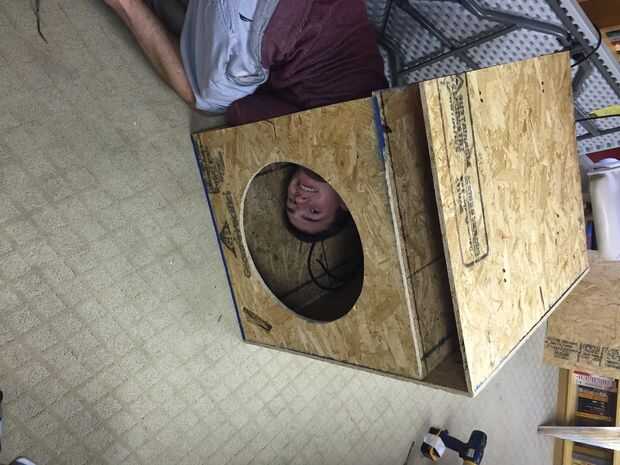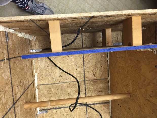 Soldar el cable de 5 pies a la pared y luego taladro de un diámetro de 1 pulgada del agujero en el centro del panel posterior, (las ruedas están en el panel mismo) y después atorníllelo en usando los dos agujeros que deben ser proporcionados. Compramos una mampara con dos gatos porque eso es todo lo que tenían, pero todo lo que necesitas es una. Yo sugeriría altamente el cable de la soldadura antes de atornillar al conector, como soldar con el jack ya en va a ser muy difícil.