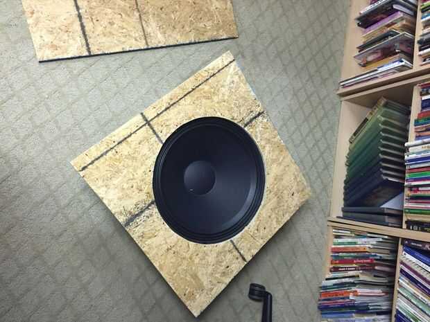 Para montar el altavoz, coloque en el orificio de bafle se cortó, meter un lápiz por los agujeros de montaje para marcar donde hay que perforar y luego perforar los agujeros. Sólo una vez hecho esto debe fijar la pieza frontal con el resto del gabinete. Una vez que han atado la pieza frontal, entonces Monte el altavoz en el orificio grande con los agujeros que ha perforado.