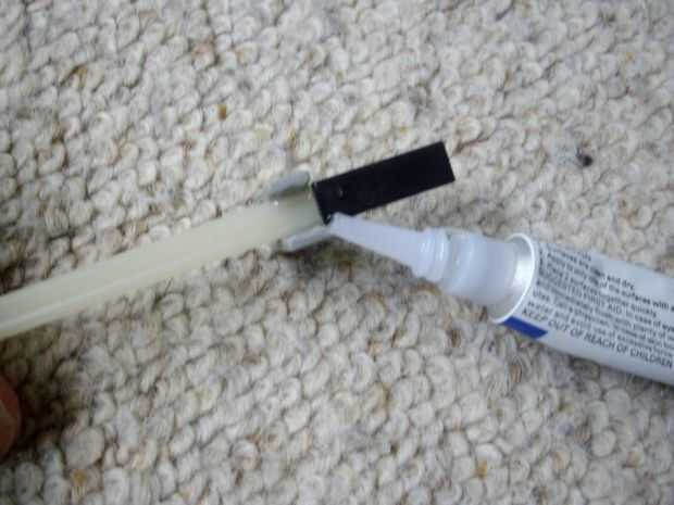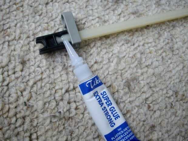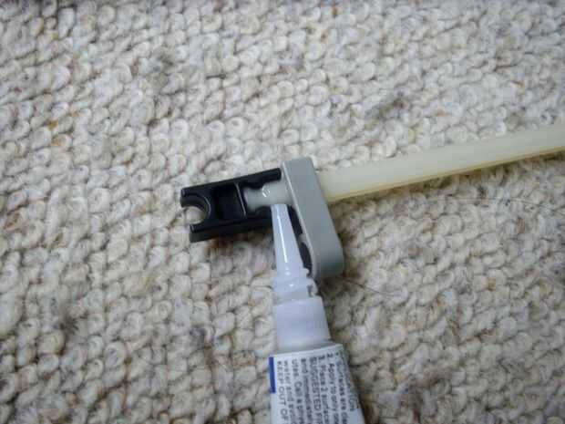 Si tienes pegamento súper, usarlo donde está apuntando el tubo de pegamento. I muy reccomment encuentran algunos. Tengo tubos de 5 por 2 dólares.