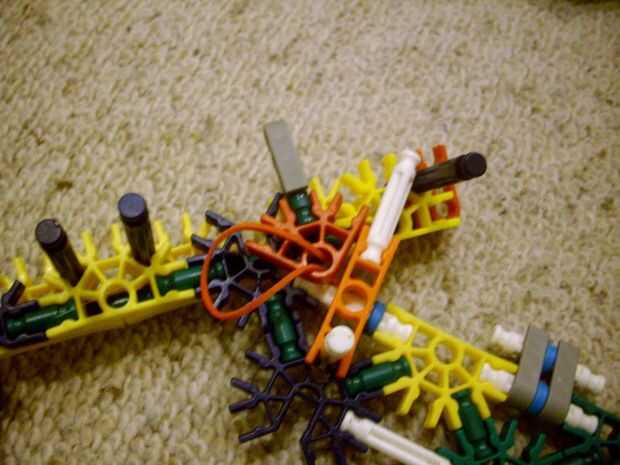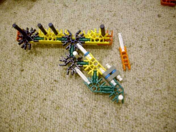 HolaEstas son las instrucciones para la pistola / iPod caso que publiqué hace un tiempo.Esta arma utiliza un medio para algo gran cantidad de piezas, dependiendo de su colección de K'nex. Utiliza algunas varillas rotas, otros trozos que ves en las in
