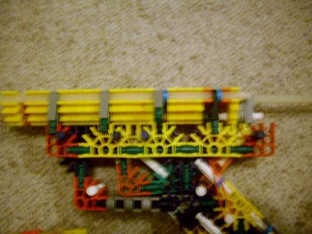 HolaEstas son las instrucciones para la pistola / iPod caso que publiqué hace un tiempo.Esta arma utiliza un medio para algo gran cantidad de piezas, dependiendo de su colección de K'nex. Utiliza algunas varillas rotas, otros trozos que ves en las in
