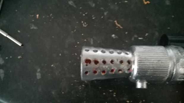 tomar mechas de su kit de dremmel, prefably uno que se ajusta el tamaño del agujero y taladre los agujeros, una vez que cada agujero es perforado hacia fuera, retire la parrilla delantera cortando alrededor del borde de la parrilla delantera, arena y cebar el frente