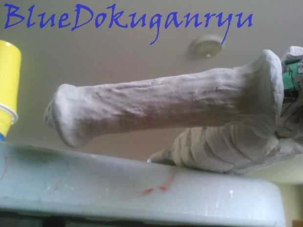 Para la Guardia extendió una hoja fina de la arcilla, se diseminan algunos pegar en la parte posterior y envuelto alrededor de un lado de la guardia. Yo rodé por dos serpientes y envuelto alrededor de cada extremo, utilicé una herramienta plana para alisar hacia fuera un lado de la serpiente para confundirse con la guardia. Finalmente utilicé un bolillo para añadir textura. Repita el procedimiento en la otra parte de la guardia.