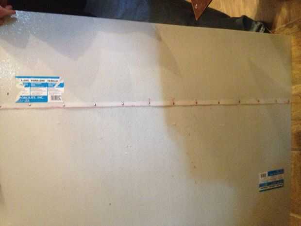 2. tomar uno de los paneles y cortar en dos trozos iguales (~ 12" ancho) con las tijeras de trabajo pesado.