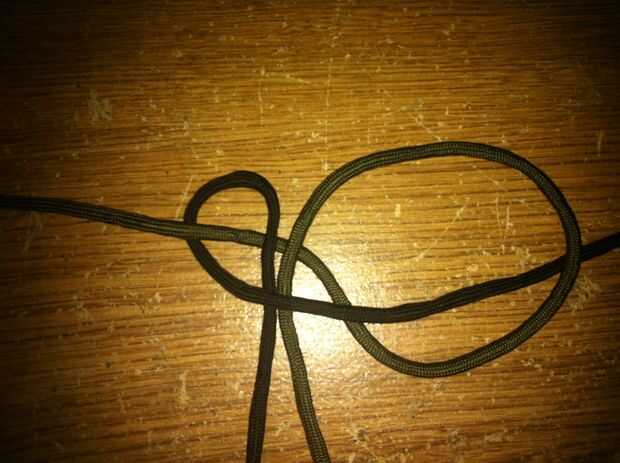 Encontrar el centro de su cadena de cable para y doble en ese momento. a partir de ahí, elegir un punto abajo para que el plegado y el punto escoges el cor representa cuánto tiempo desea que el fob que. Entonces, utilizando que los dos extremos sueltos empiezan a atar el nudo en la imagen.