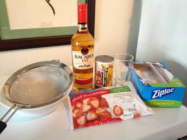 -Alta-prueba alcohol (más de 80 prueba) es necesaria para la precipitación del ADN. Ya que tradicionalmente se haría un daiquiri con Ron, se seleccionaron los Bacardi 151. (Tacaños pueden utilizar Everclear - 151 prueba, o en el 75%).