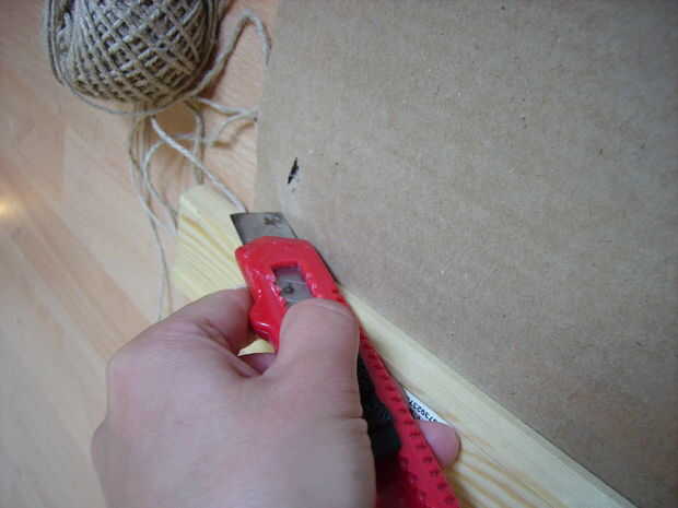 tomar la pieza recta de madera (o lo que usas) y colóquelo sobre el cartón.