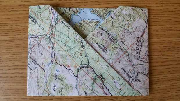 Paso 1: Se necesita un pedazo de papel doble papel en formas largo medio, abrir el papel y doblar en los dos coners superior.Paso 2: Las esquinas de dos que dobla solo doble hacia abajo y voltear el papel y doblar por la mitad rip luego de por lo men