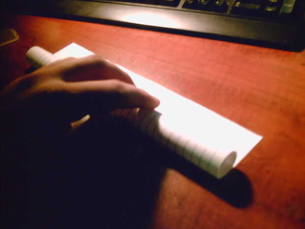 en primer lugar, enrollar el papel longitudinal para el ancho deseado de la flor color de rosa.