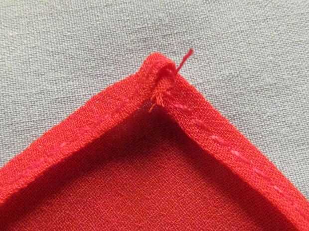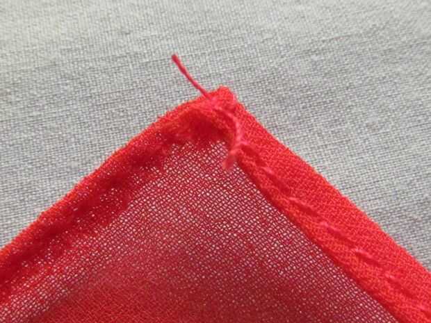 Si dobladillo algodón puede dab un par de gotas de agua en la esquina, para ayudar a mantener los extremos perdidos en su lugar, y más fácilmente hacen un pliegue limpio.