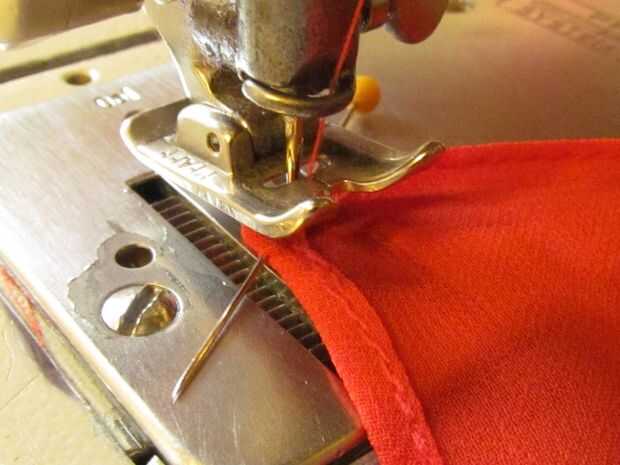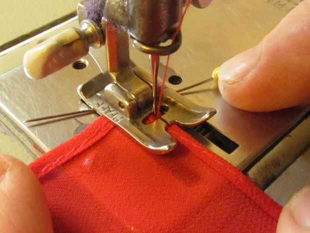 Baje el prensatelas y cosa lentamente, otra vez usando el pasador para ayudar a aliviar la esquina a través de.