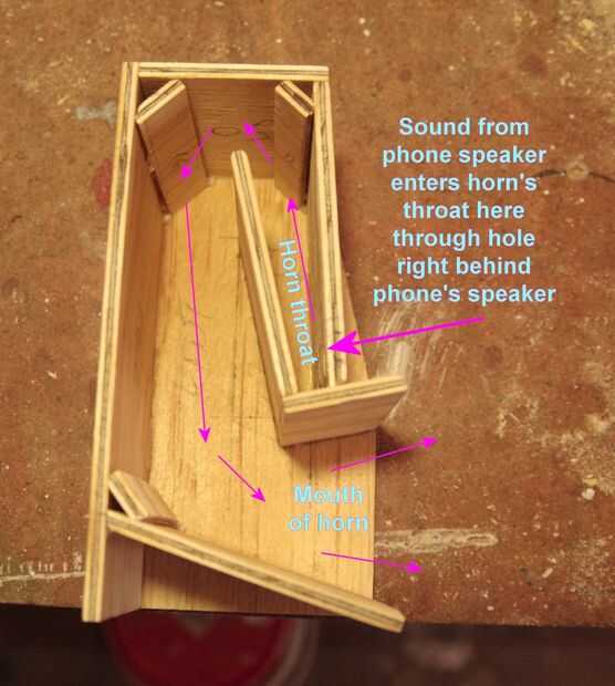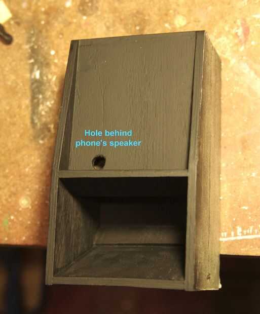 La segunda imagen muestra el agujero que será justo detrás del altavoz del teléfono para canalizar el sonido en la garganta del cuerno.