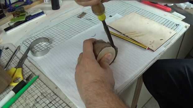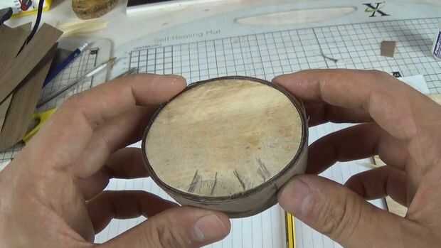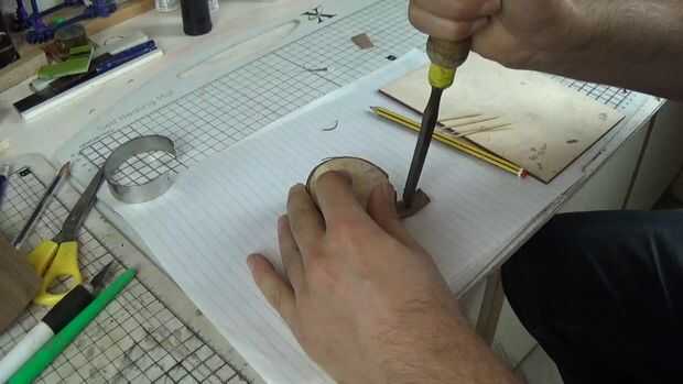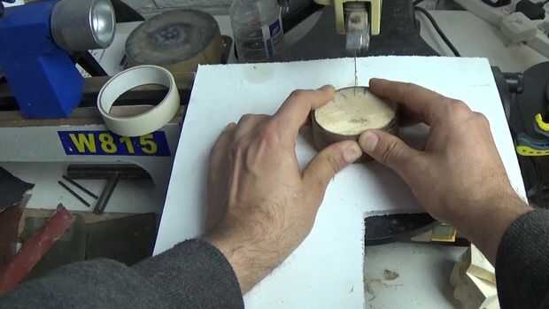 Corte la pequeña sección en la parte posterior y procedió a pelar la madera de la antigua con un cincel, teniendo cuidado de no dañar el espacio en blanco.