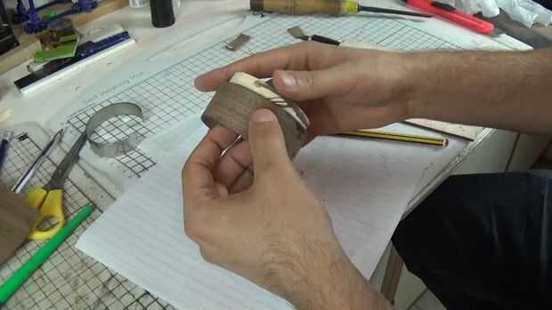 Después de pegar todas las capas 5 hice marcas donde corté una sección en la parte posterior de la pulsera.
