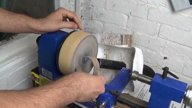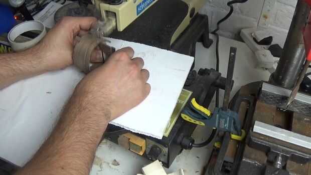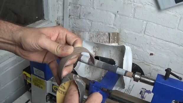 Alisó de cada superficie del brazalete con un grano fino en la lijadora de banco, y para llegar al interior envuelve un pedazo de papel de lija en un taco y girar en torno.
