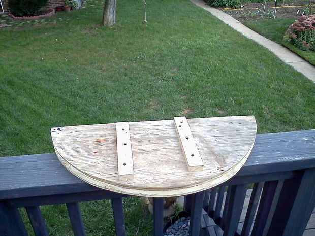 También puse un par de tablas en la parte posterior por lo que podría colocar en el borde superior de mi carril de la cubierta para evitar que se convierta. Usted puede diseñar cualquier método conveniente como atornillar directamente a una mesa de picnic, utilice el orificio de la estaca en una baranda para cama carro Pick-up, o taladre orificios aunque y libra alguna barra en el suelo.