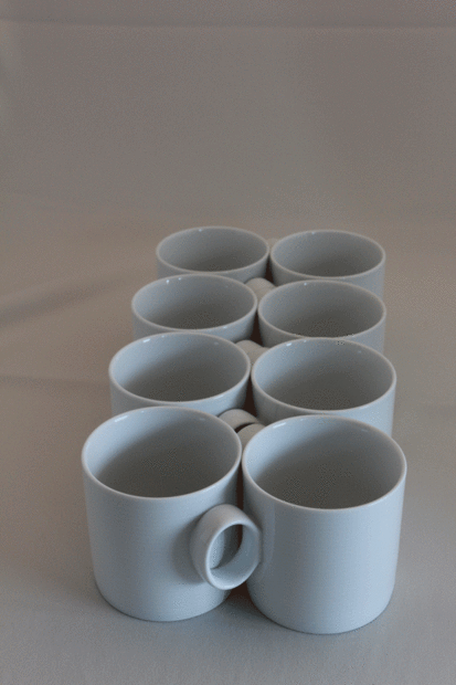 Esta forma del Doubler de taza de café es tal que queda bien encima de la fila inferior de tazas y la fila superior de tazas no deslice bien: hay una frontera en ambos lados para ese propósito.