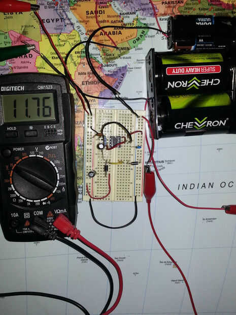 Utilice un multímetro para medir el voltaje en Vhacia fuera (Vout es el terminal de salida positivo y GND será negativo)