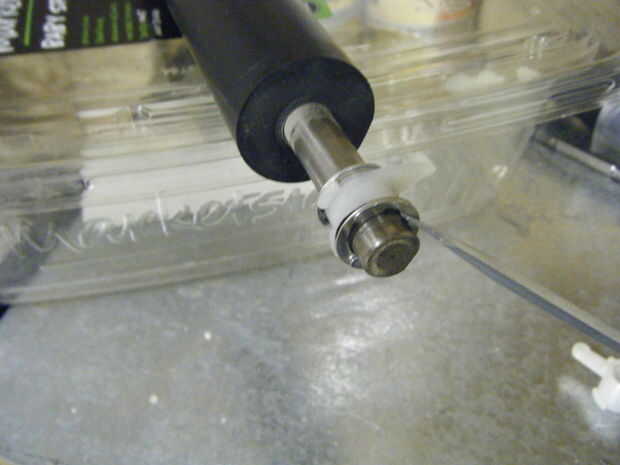 Usted puede cortar los restantes dos rodillos por lo que la longitud total es la misma con su sierra circular metal. Asegúrese de que dejar al menos 1/2 pulgada o más metales básicos expuestos más allá de la goma en cada lado y así puede adjuntarlos al riel inferior.