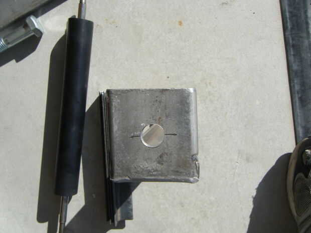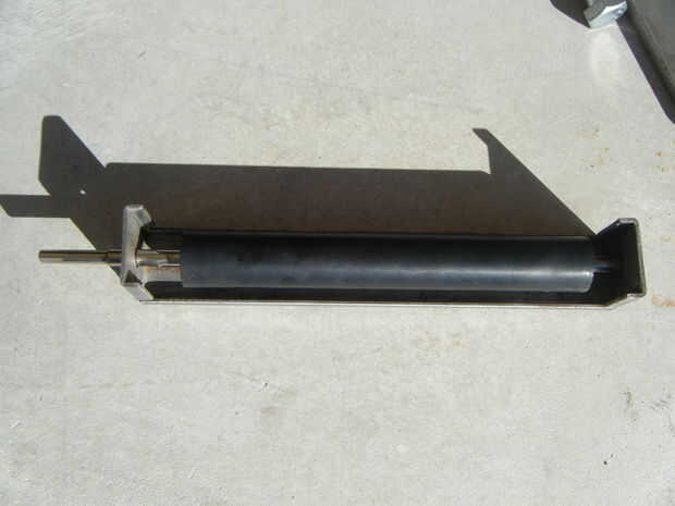 Marque el punto de la curva 2 y 1/2 pulgadas con un cincel y ambos lados del titular hacia abajo usando una pieza de 2 x 4 para ayudar a mantener incluso la curva de la curva. Después de que ambos lados de la curva, la longitud del soporte del rodillo será media pulgada más largo que la parte más larga de caucho de los rodillos dos inferiores. Mina era 10 pulgadas de largo (9 ½ pedazo de goma de pulgada y 1/2 pulgada).